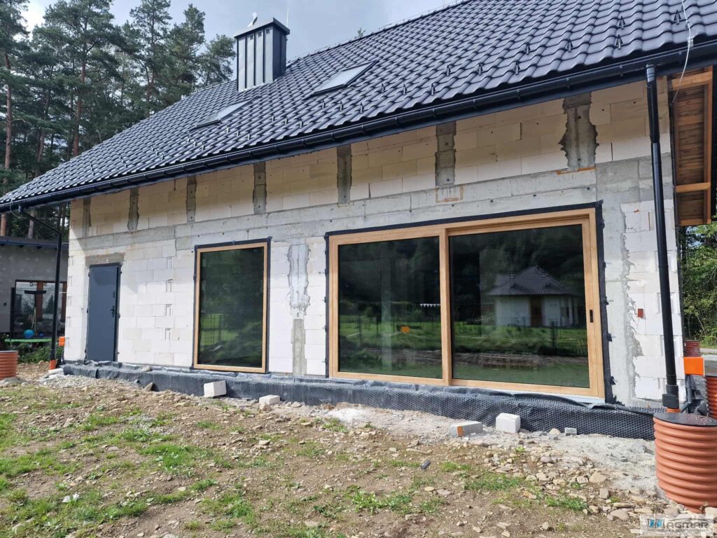 W budynku zainstalowano drzwi HST podnoszono-przesuwne oraz szklenie w szybą lustro weneckie.